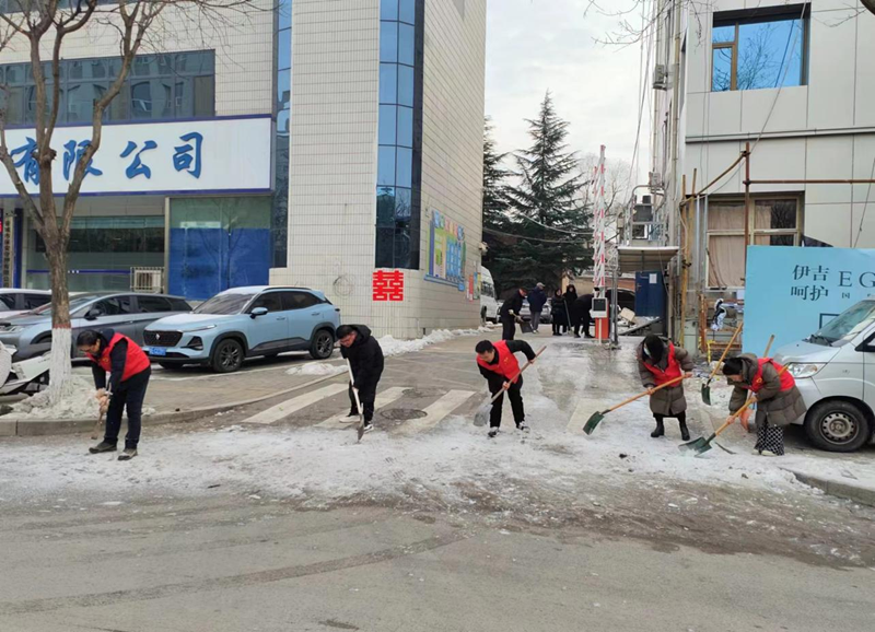 為保障出行安全,最大限度地減少降雪等災(zāi)害性天氣對(duì)市民工作、生活造成的不便,12月18日,在公司黨支部書(shū)記、董事長(zhǎng)潘軍的帶領(lǐng)下,我公司全體干部職工以雪為令,“遇雪”奮戰(zhàn),全力清除公司周邊路段積雪,在寒風(fēng)中為行人送去溫暖。