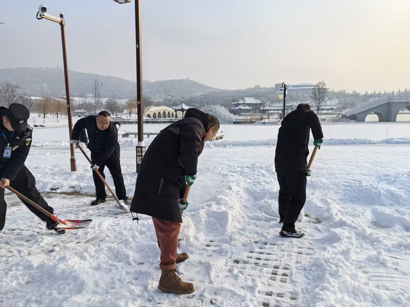 雪情就是命令,防控就是責(zé)任。我公司人員重點明確辦公區(qū)域、商務(wù)大廈院內(nèi)、機動車道等區(qū)域,干部職工們不畏嚴寒、腳踏積雪,手持鐵鍬、掃帚,分工協(xié)作、干勁十足,用實干詮釋了水務(wù)人的奉獻與擔(dān)當(dāng)。