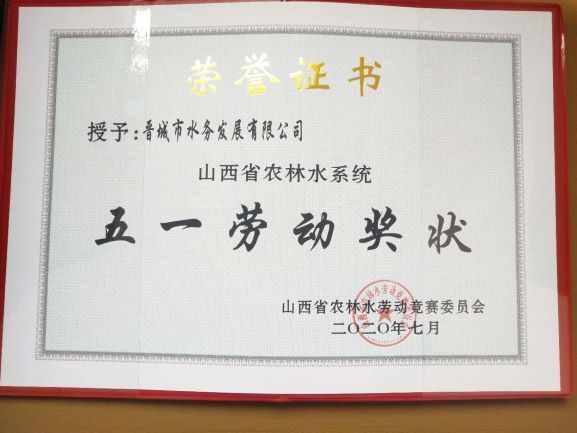 熱烈祝賀我公司榮獲 山西省農(nóng)林水系統(tǒng)五一勞動獎